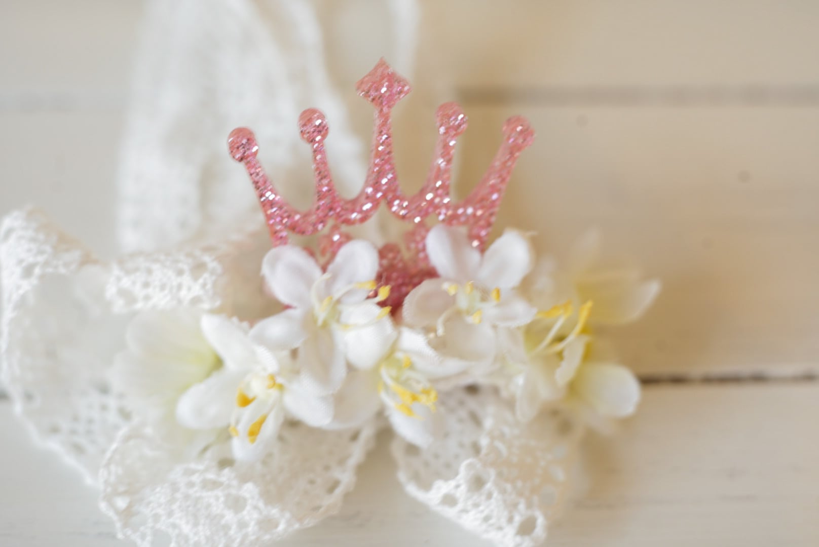 クラウンを小さなお花やパールで飾った可愛いクラウンです✩︎⡱ おリボンで結ぶタイプです。