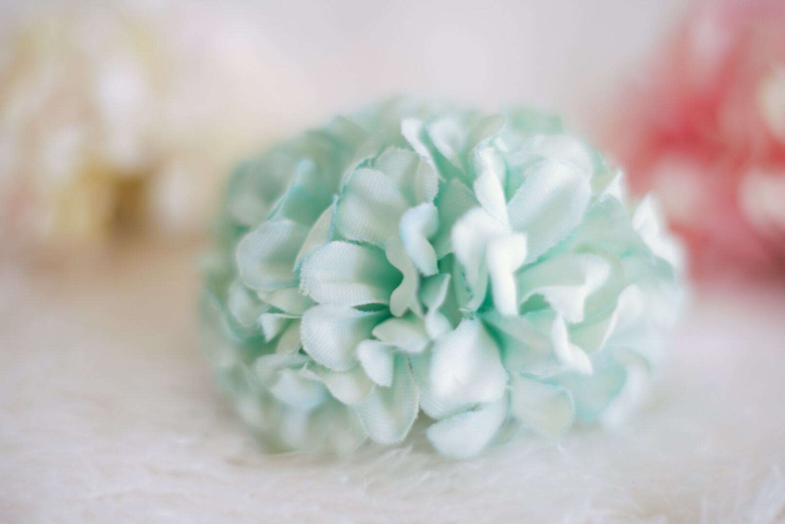 小さな紫陽花のバレッタ。シンプルでありながらも紫陽花の美しい色合いが特徴です。コロンとした可愛らしいスタイル。浴衣にも似合います。